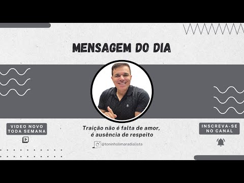 IMPORTANTE: Se a mensagem do vídeo não coincidir com o texto publicado, é que em respeito ao autor aqui o texto foi publicado na íntegra, mas passou por edição na MENSAGEM DO DIA, devido a direção da emissora, numa intenção de fazer ajustes no formato do programa, NÃO permitir mais a leitura de mensagens que ultrapassem dois minutos.
